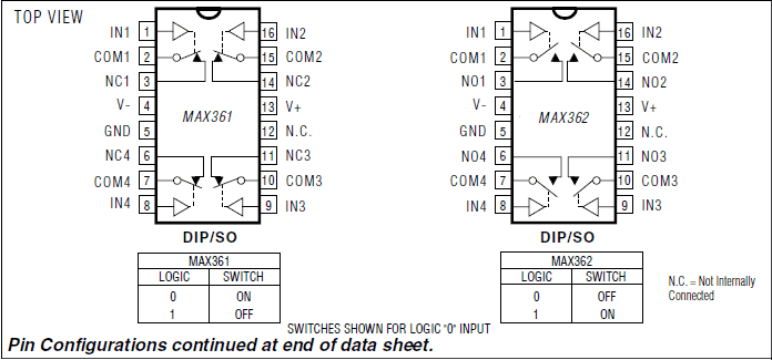 MAX362 - 高精度、四路、SPST模拟开关 - 保护器 - Maxim美信半导体高性能芯片品质 - 美信半导体