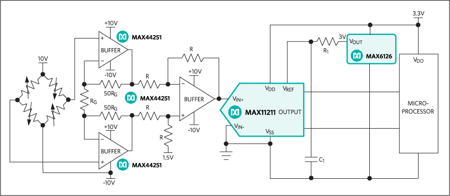 器件具有极佳的性能指标:6µV (最大值)失调电压、19nV/°C (最大值)漂移、0.1Hz至10Hz范围内噪声为123nVP-P,可理想用于超低噪声、超高直流精度的应用,如:压力传感器、应变计、精密电子秤、医疗仪器接口电路。